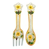 Great as a gift!.Add "flavor" to any wall inside or outside your home!.Create a personal and elegant touch to your kitchen!."Larger than life" sized, excellent attention to detail and such vibrant color!.Perfect for ANY gardenia collector!. BRAND NEW 3-Dimensional Gardenia Hanging 2pc Ceramic Fork & Spoon Wall Decor Set. This set is really of a beautiful design. Each piece has 3-D / embossed Gardenias on it. The detail is extraordinary and the colors are so vibrant! There is a spoon and for in the set.Each piece is made of thick ceramic with a very fine gloss finish coating it; and, they are quite heavy and very sturdy in design. The pieces measures approx. 17" x 5" and will stick off of the wall approx. 2.5".
